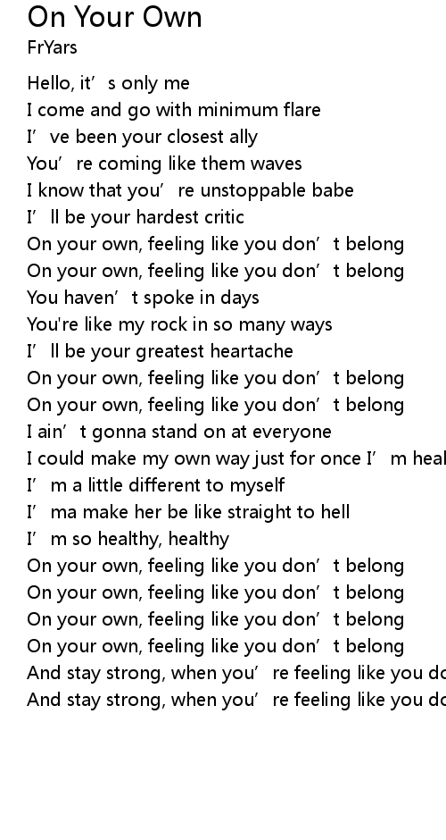 | [03:01.03] | On your own, feeling like you don' t belong |