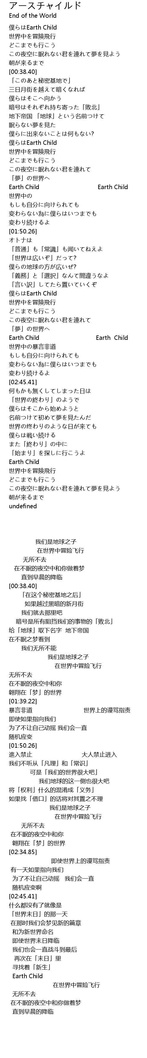 | [01:07.15] | 地下帝国 「地球」という名前つけて |