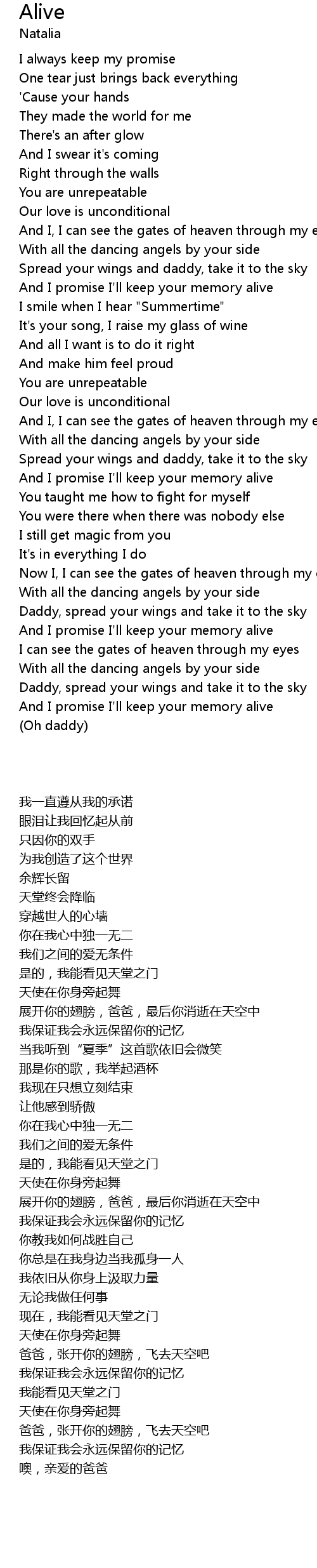 And I promise I'll keep your memory alive |