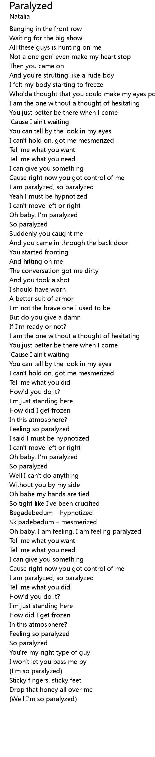 | Oh baby, I am feeling, I am feeling paralyzed | |