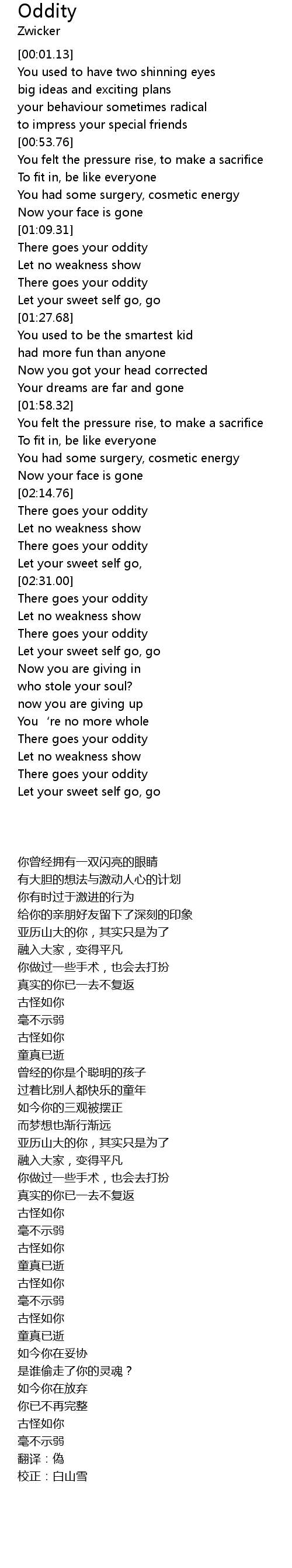 | [02:32.73] | There goes your oddity |