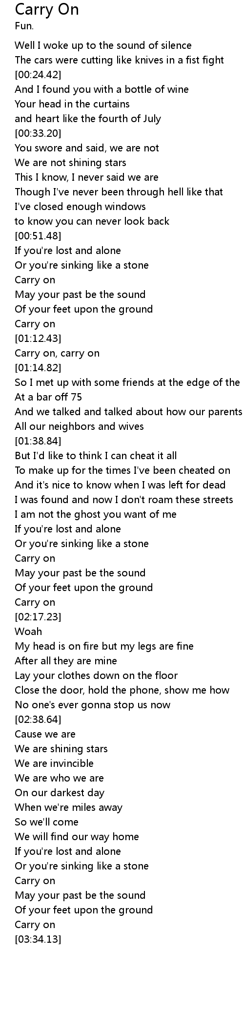 Carry on, carry on |
