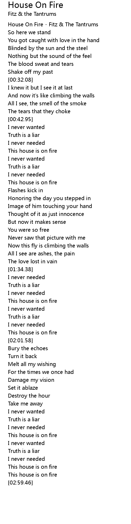 House On Fire - Fitz & The Tantrums |