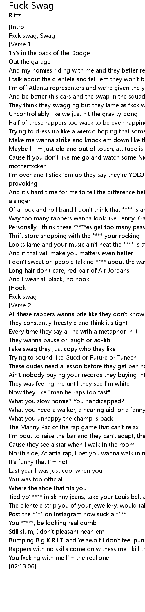 | [00:06.98] | Fxck swag, Swag |