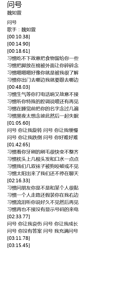 | [00:00.00] | 问号 |