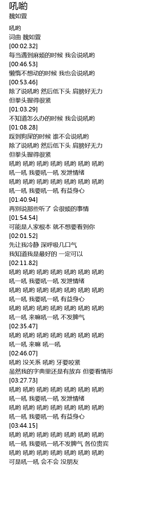| [01:37.64] | 吼一吼 我要吼一吼 有益身心 |