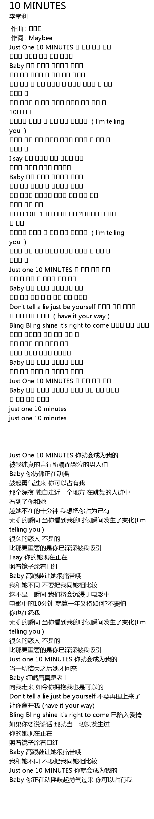 | [00:09.540] | Just One 10 MINUTES 你就会成为我的 |