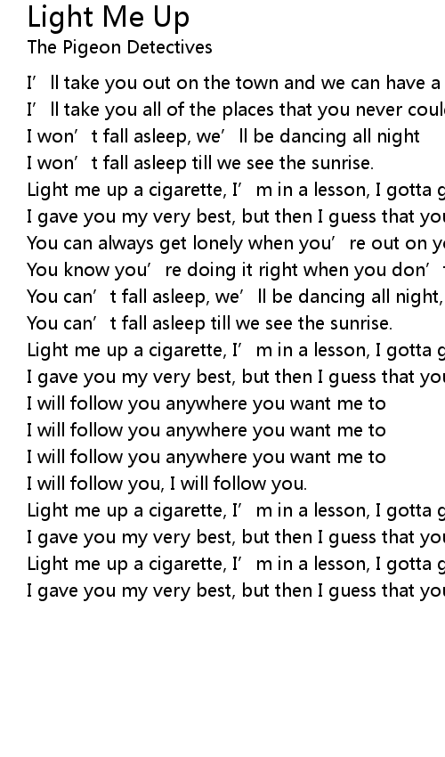 | Light me up a cigarette, I' m in a lesson, I gotta go | |