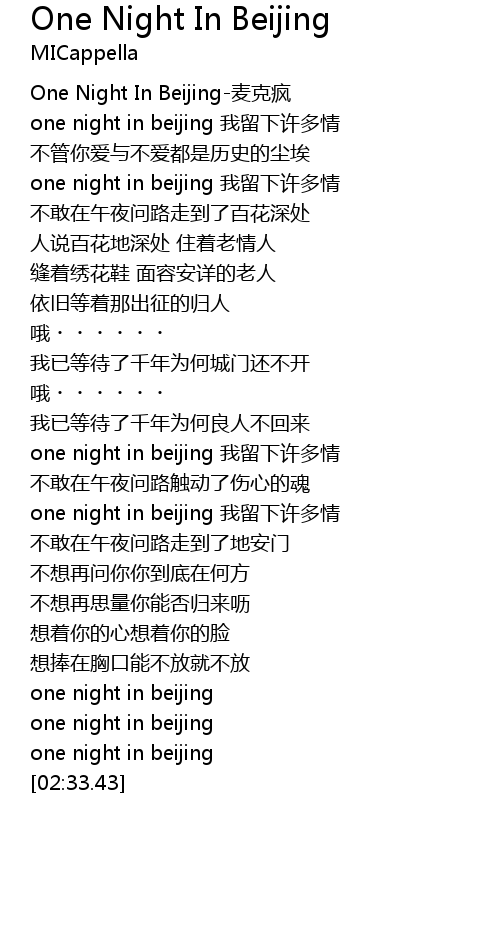 | [01:37.84] | one night in beijing 我留下许多情 |