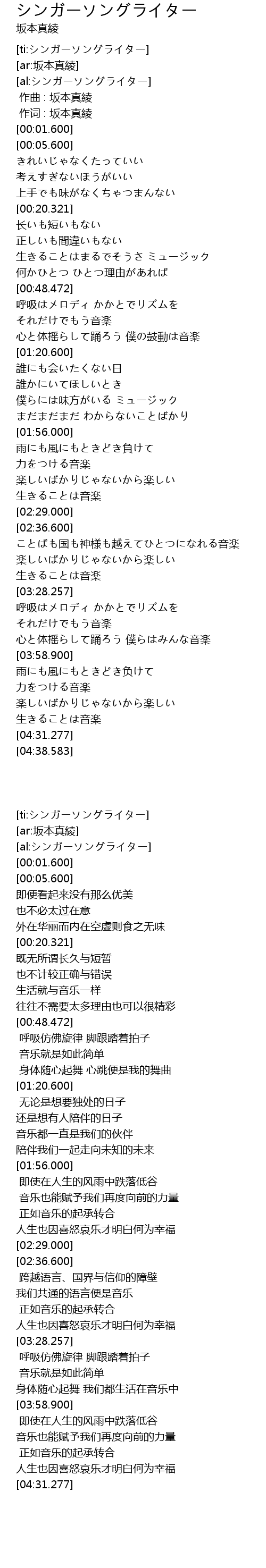 | [ti:シンガーソングライター] | |