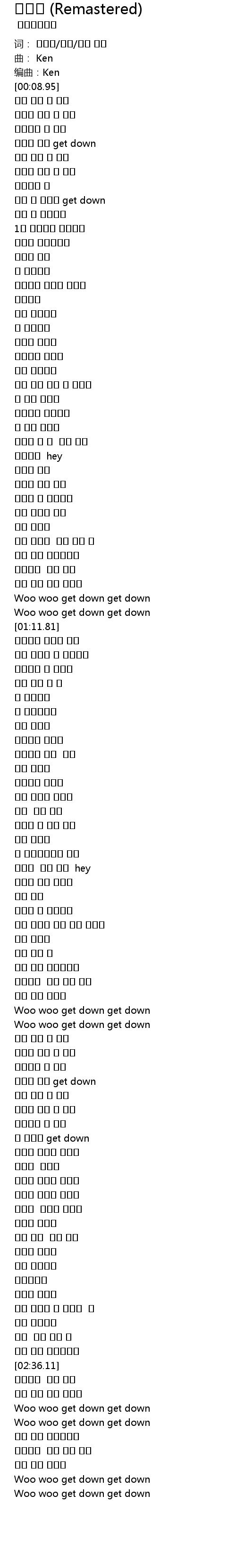 | [03:02.81] | Woo woo get down get down |