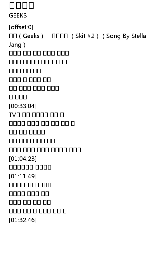 | [00:00.47] | Geeks Skit 2 Song By Stella Jang |