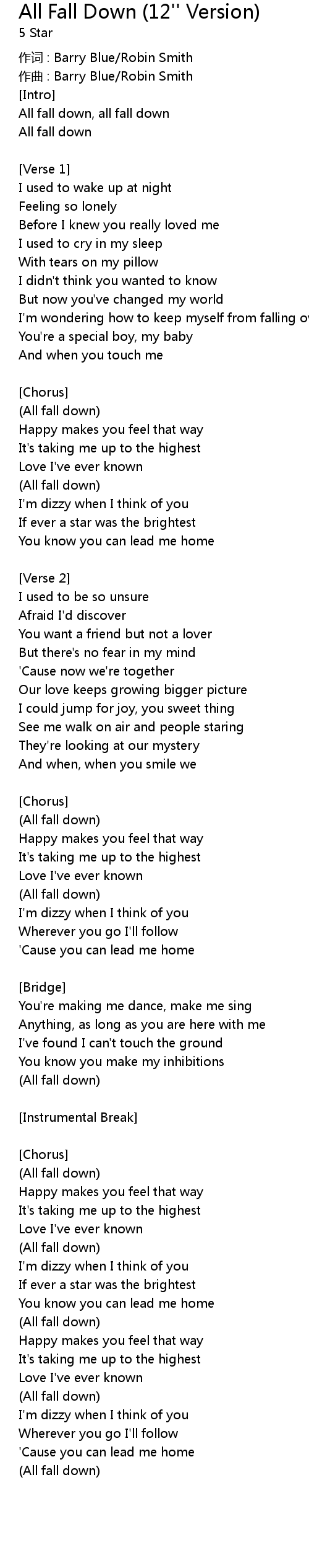| 歌曲 | All Fall Down (12'' Version) |