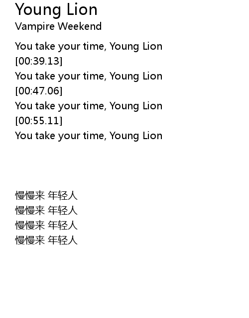 | [00:33.14] | You take your time, Young Lion |