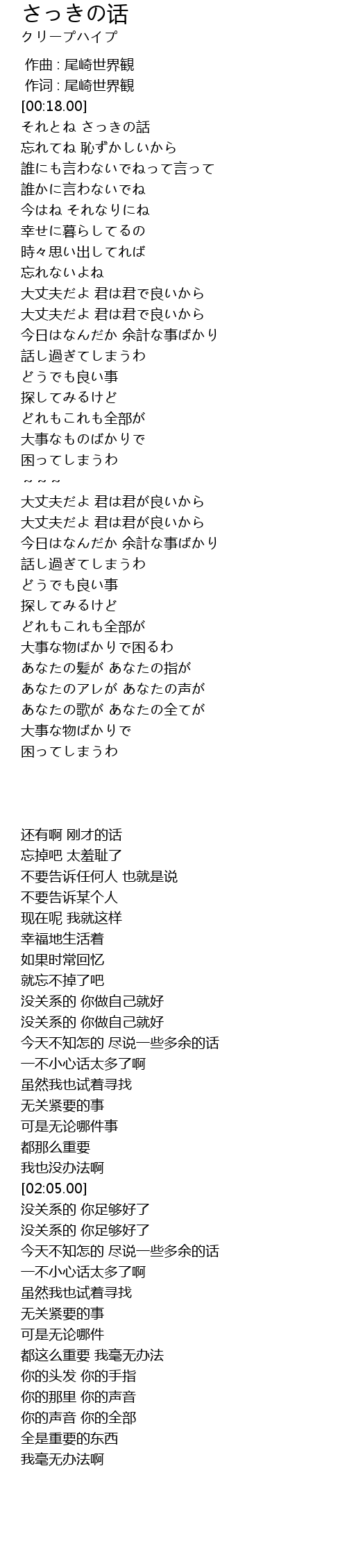 | [00:01.00] | 作词 : 尾崎世界観 |