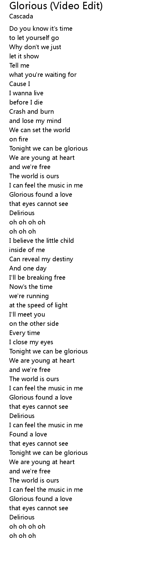Tonight we can be glorious |
