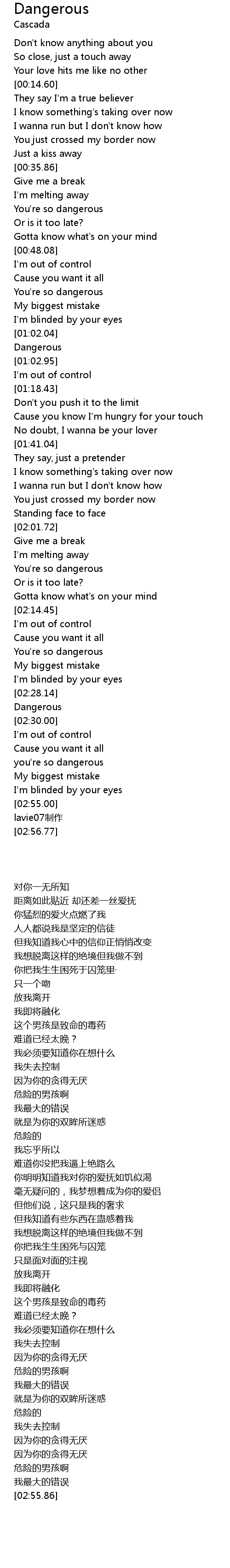 | [02:28.43] | Dangerous |