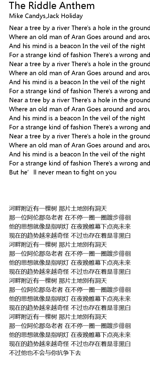 | [02:33.02] | 那一位阿伦郡岛老者 在不停一圈一圈踱步徘徊 |