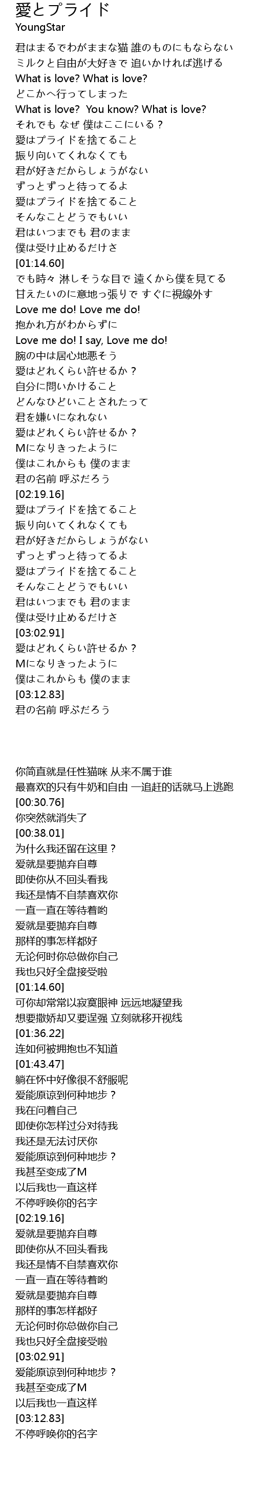 | [02:34.68] | 愛はプライドを捨てること |