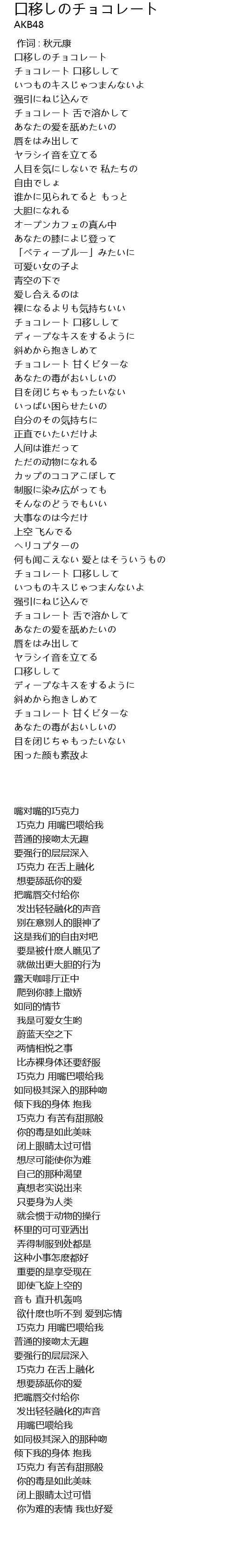 作词 : 秋元康 |