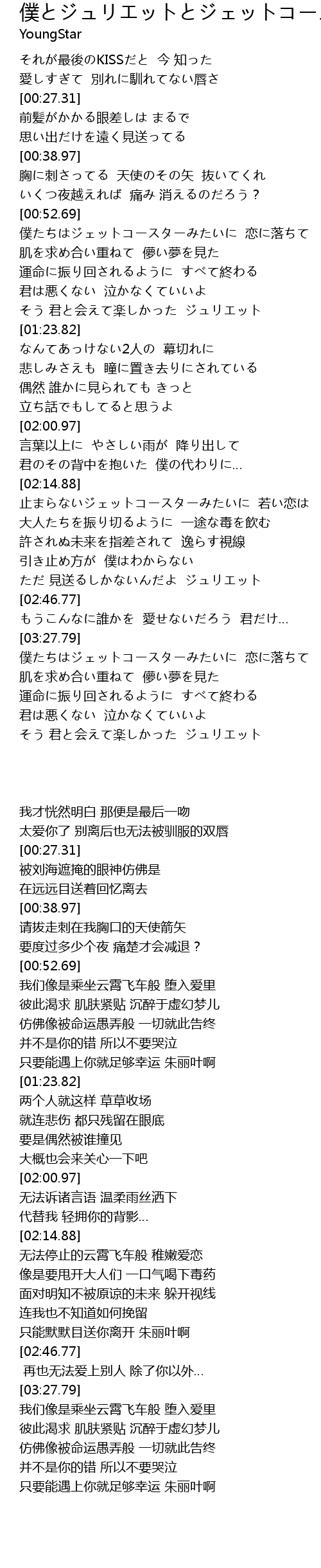 | [00:54.25] | 僕たちはジェットコースターみたいに 恋に落ちて |