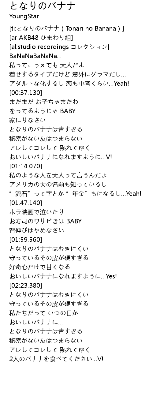 | [02:00.950] | となりのバナナはむきにくい |