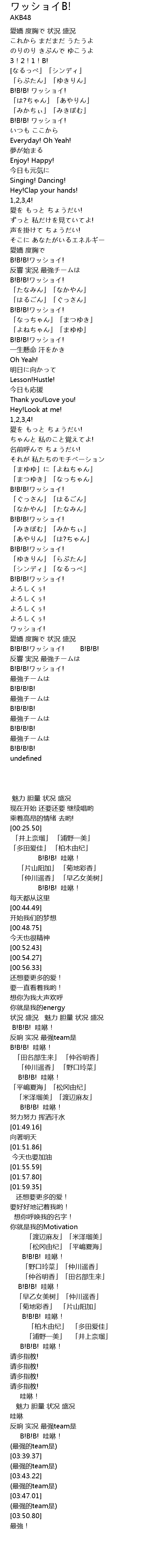 | [03:25.80] | B!B!B!ワッショイ! B!B!B! |