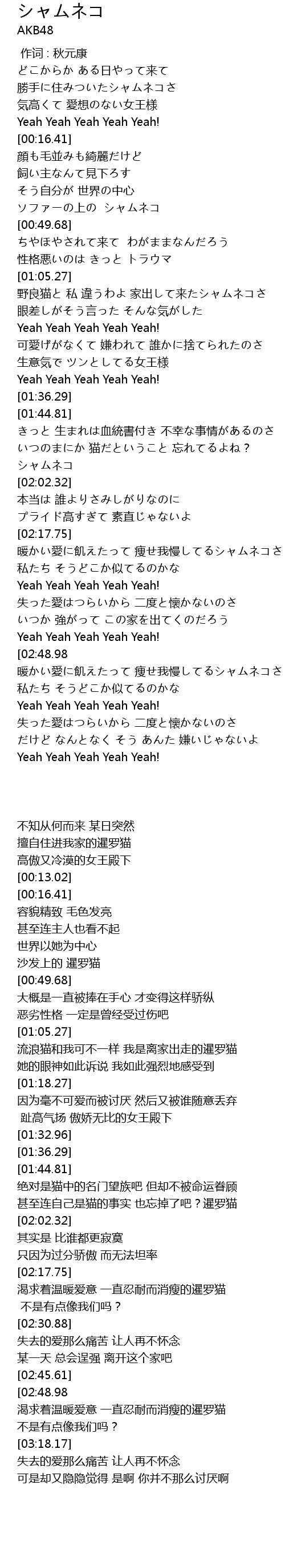 | [01:55.04] | いつのまにか 猫だということ 忘れてるよね? シャムネコ |