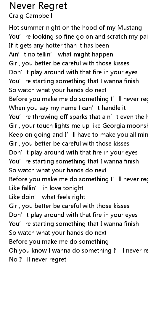 | No I’ll never regret |