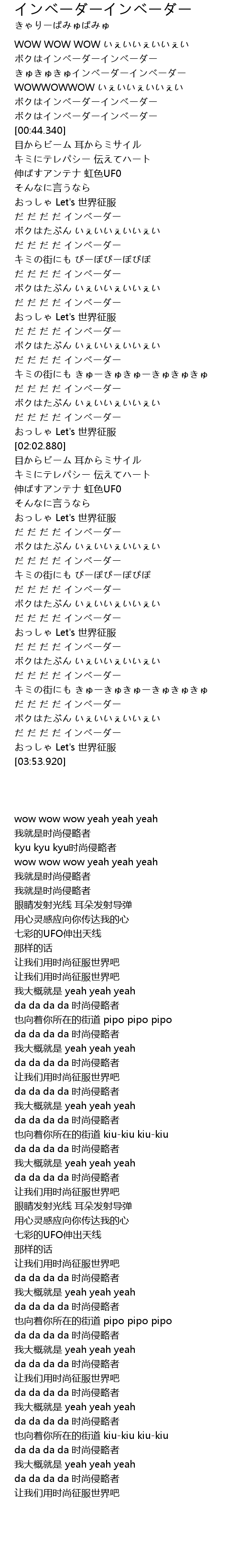 | [00:38.020] | ボクはインベーダーインベーダー |