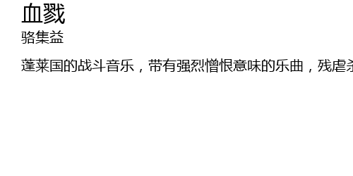 | 蓬莱国的战斗音乐,带有强烈憎恨意味的乐曲,残虐杀戮的快感、充满对鲜血的渴望。 |