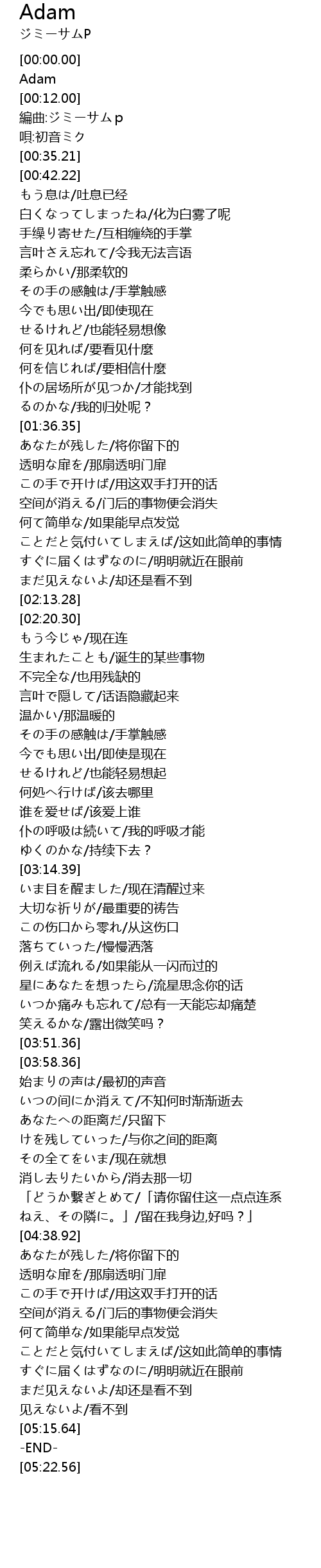 | [05:11.20] | 见えないよ/看不到 |