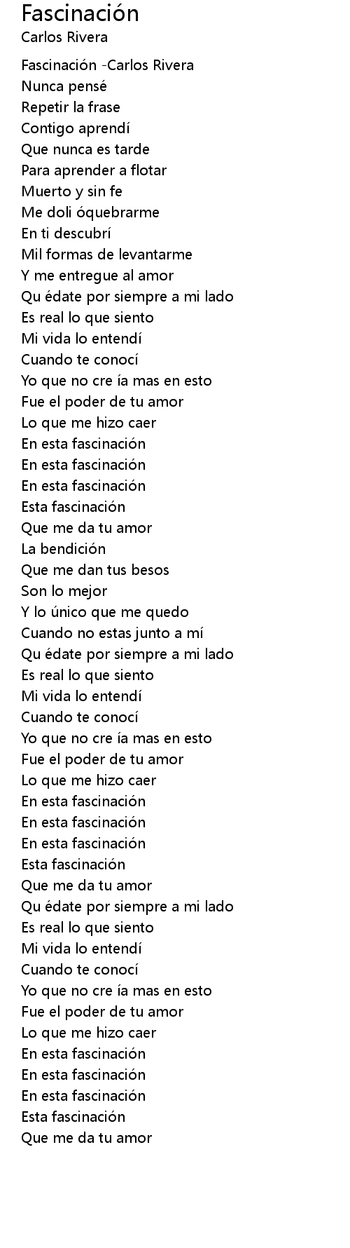 | [00:00.00] | Fascinación -Carlos Rivera |