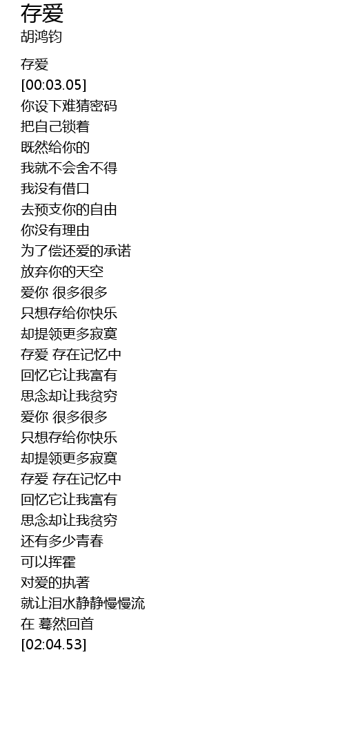 | [00:40.25] | ài nǐ hěn duō hěn duō |