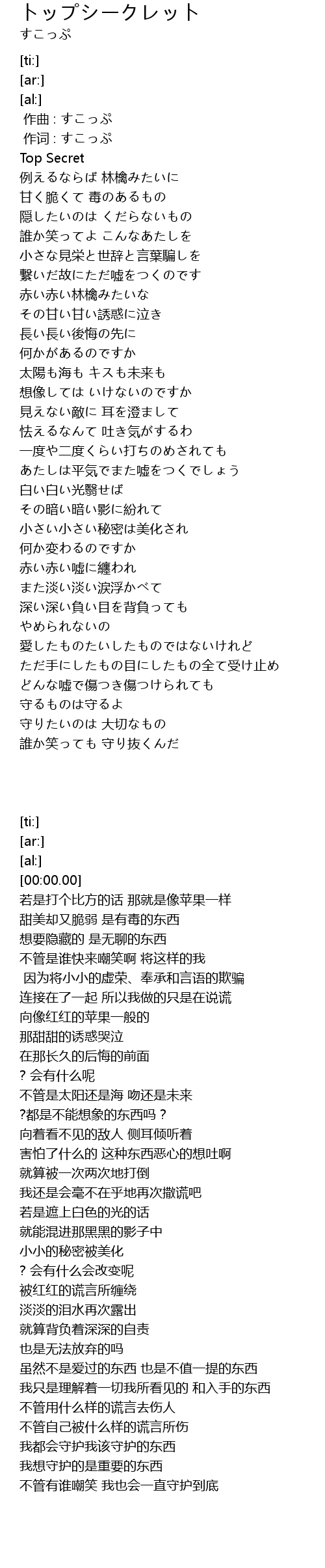 | [02:13.41] | 小さい小さい秘密は美化され |