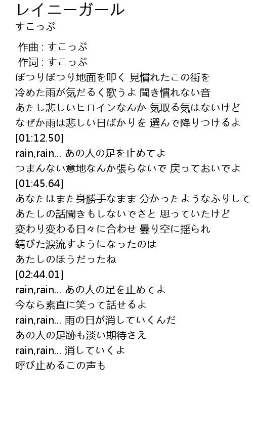 | [02:55.85] | rain,rain... あの人の足を止めてよ |