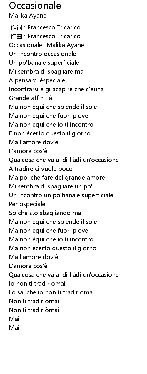 | [00:00.00] | Occasionale Malika Ayane |
