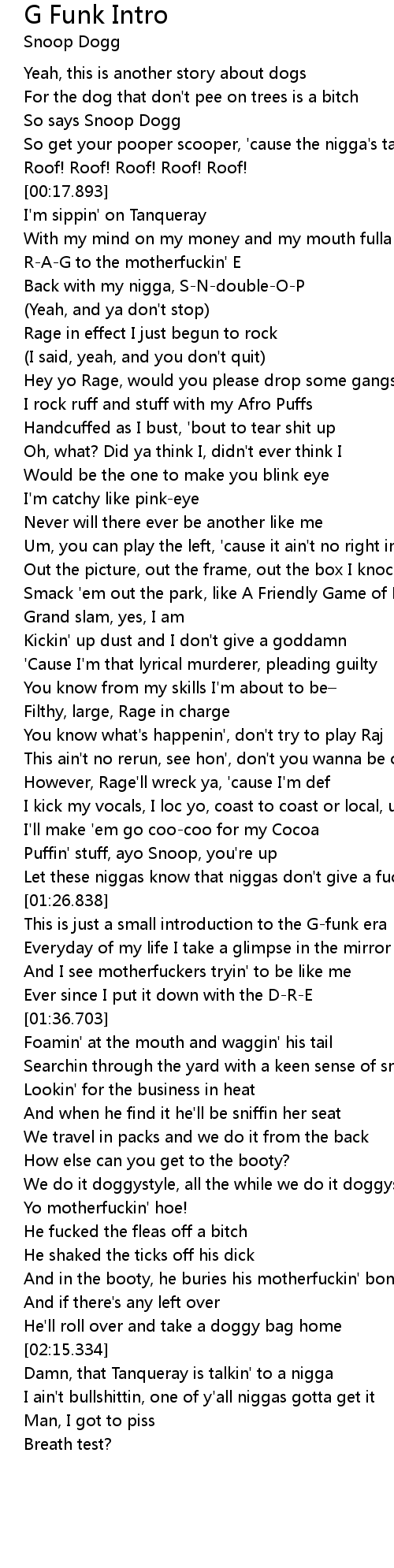 | [01:27.142] | This is just a small introduction to the Gfunk era |