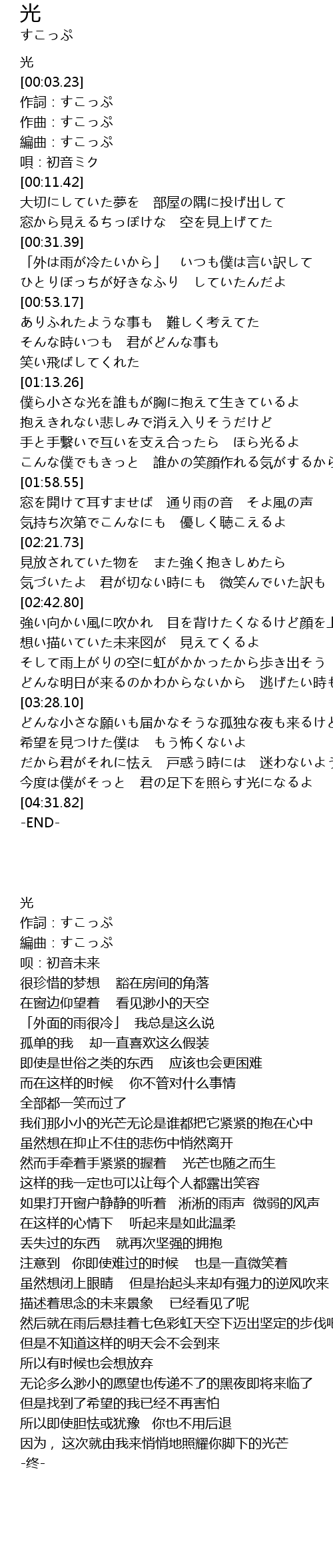 | [00:01.14] | 光 |