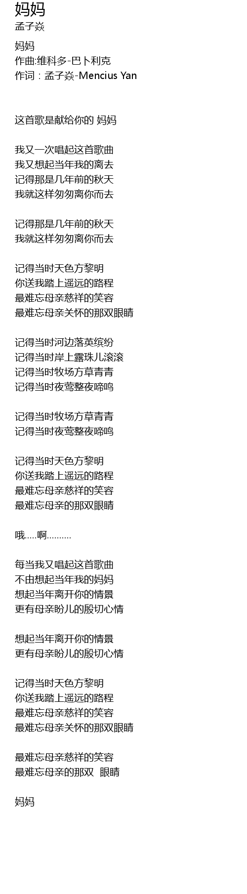| bù yóu xiǎng qǐ dāng nián wǒ de mā mā | |
