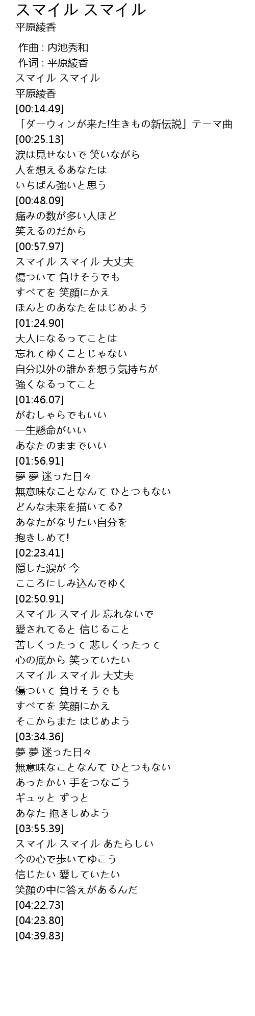 | [00:59.17] | スマイル スマイル 大丈夫 |