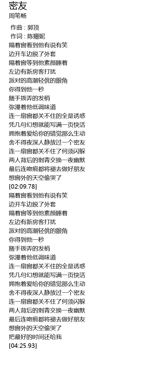 | [03:37.94] | 舍不得夜深人静放过一个密友 |