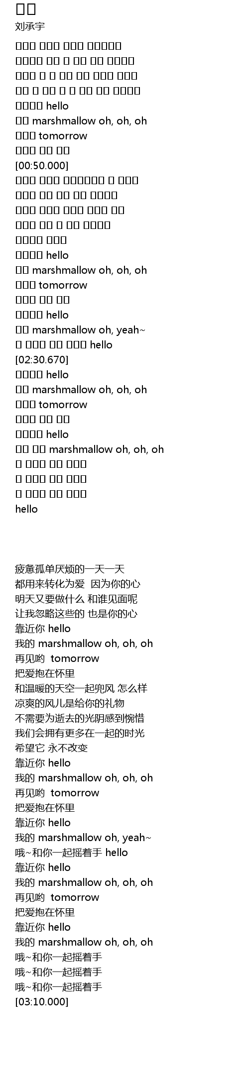 | [00:38.370] | 我的 marshmallow oh, oh, oh |