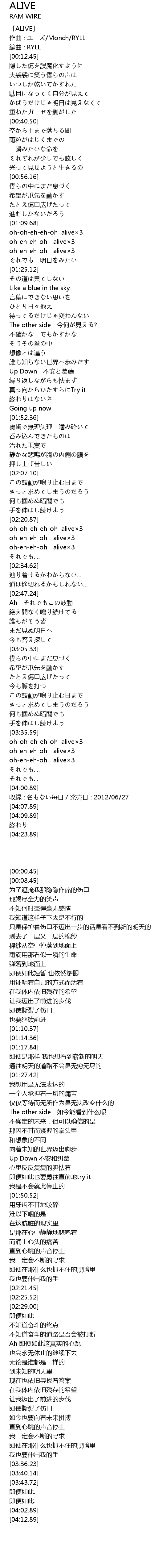 | [03:43.72] | oh-eh-eh-oh alive×3 |