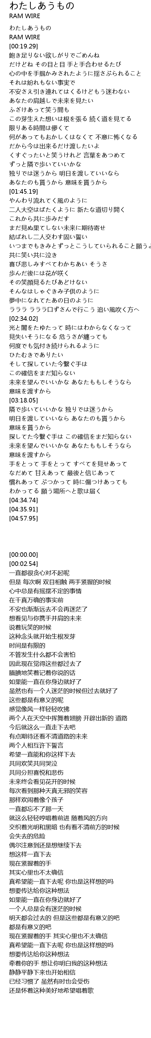 | [00:00.00] | わたしあうもの |
