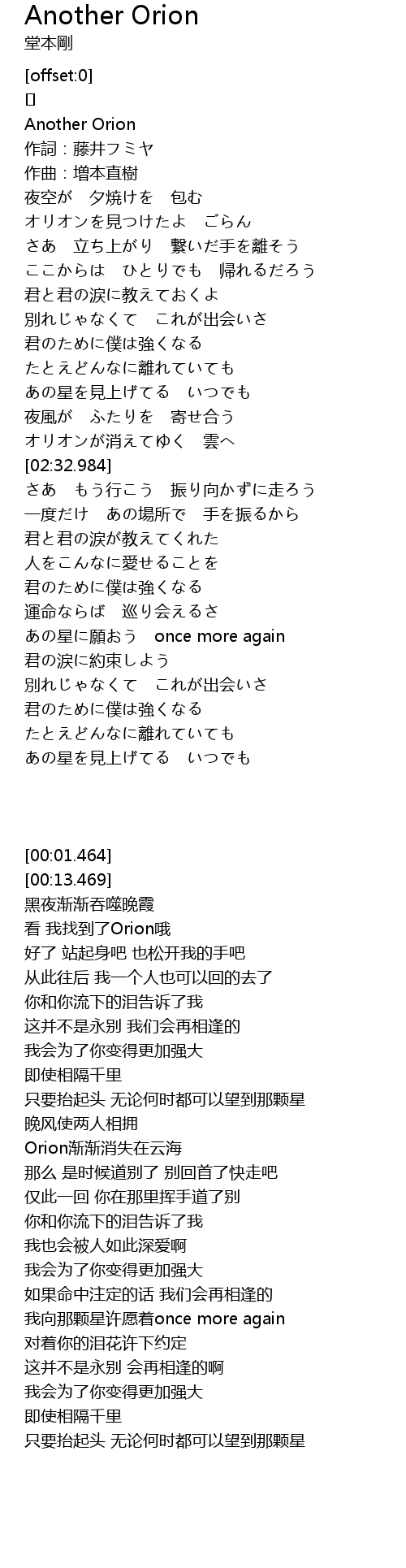 | [02:21.696] | オリオンが消えてゆく 雲へ |