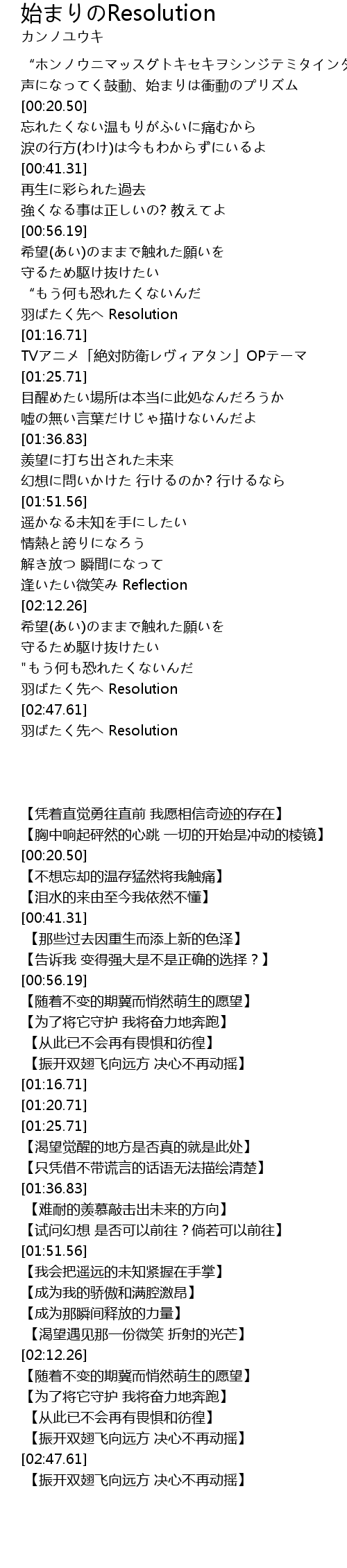 | [03:02.77] | 羽ばたく先へ Resolution |
