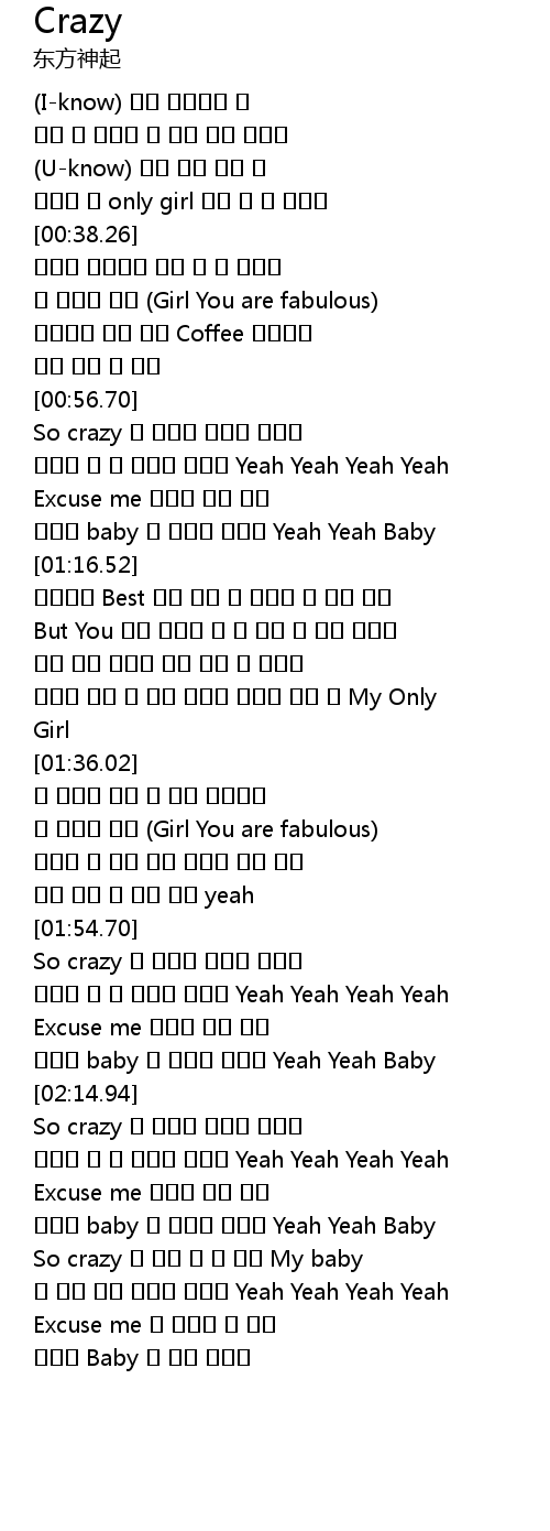 | [01:55.31] | So crazy 넌 너무나 완벽해 어떡해 |