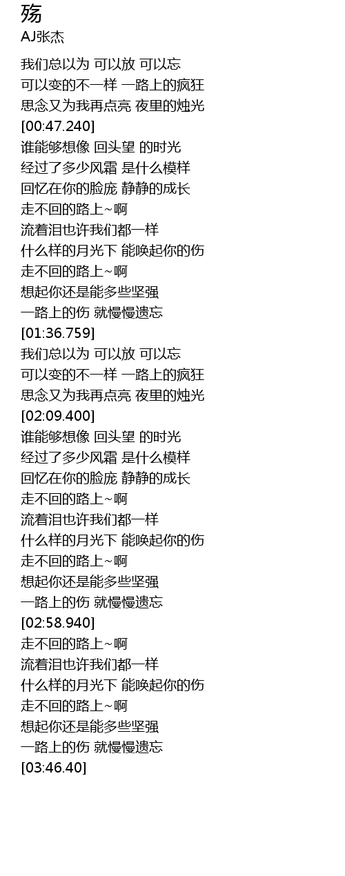 | [03:37.100] | 一路上的伤 就慢慢遗忘 |
