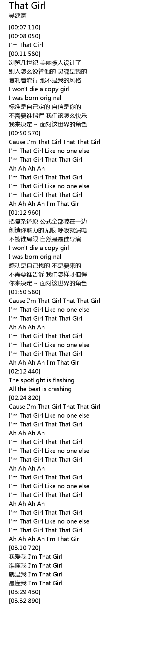 | [02:33.480] | Cause I' m That Girl That That Girl |